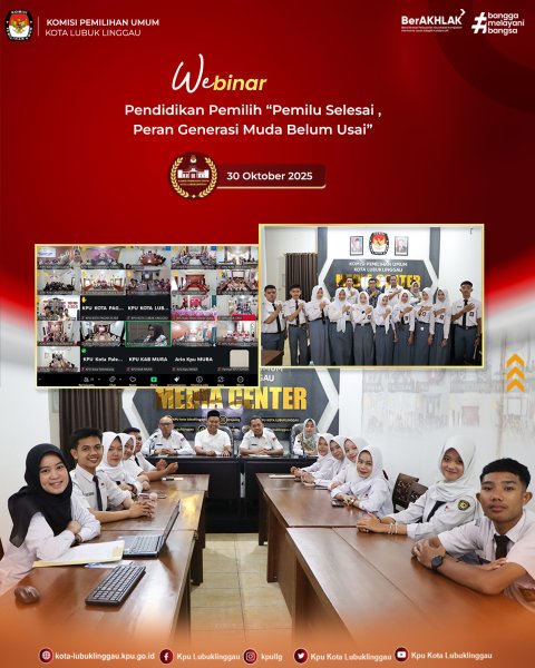 #TemanPemilih, Komisi Pemilihan Umum Provinsi Sumatera Selatan melaksanakan kegiatan sosialisasi dan pendidikan pemilih dalam rangka peningkatan pengetahuan dan pemahaman para pelajar di Provinsi Sumatera Selatan tentang demokrasi dan kepemiluan. Selaras dengan hal ini, KPU Provinsi Sumatera Selatan melalui KPU Kota Lubuk Linggau mengajak siswa-siswi yang ada di Kota Lubuk Linggau mengikuti kegiatan Sosialisasi dan Pendidikan Pemilih dengan tema "Pemilu Selesai, Peran Generasi Muda Belum Usai" pada Kamis (30/10/2025).