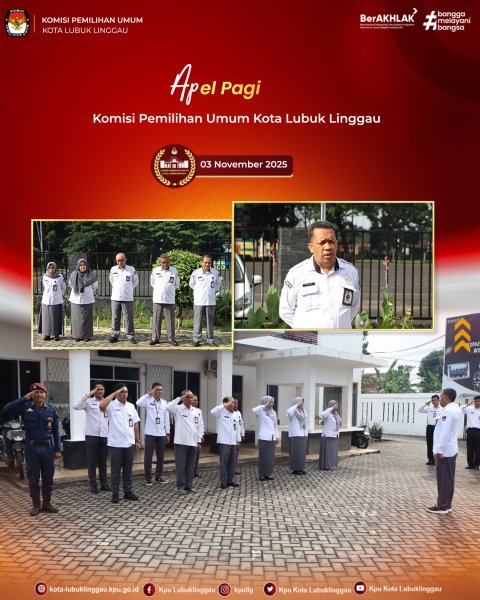 #TemanPemiih, Senin, 03 November 2025. KPU Kota Lubuk Linggau melaksanakan Apel Pagi di halaman Kantor KPU Kota Lubuklinggau. Bertindak sebagai pemimpin Apel Sekretaris KPU Kota Lubuk Linggau Bapak Hironimus Emilianus Mbeko, SE.,M.M diikuti oleh Staff ASN, CPNS dilingkungan sekretariat KPU Kota Lubuk Linggau. Dilaksanakan pada pukul 08.00 wib s.d Selesai