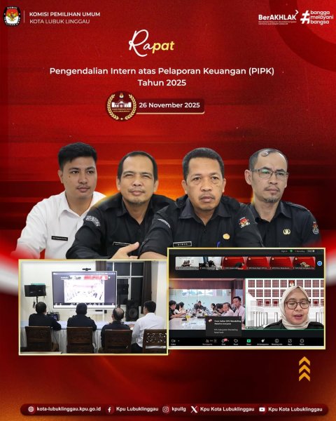 KPU Kota Lubuk Linggau menegaskan komitmennya untuk terus memperkuat tata kelola keuangan yang profesional dan transparan. Penguatan sistem pengendalian intern menjadi langkah penting dalam memastikan pertanggungjawaban keuangan yang dapat dipercaya serta mendukung terciptanya penyelenggaraan pemilu yang berintegritas.