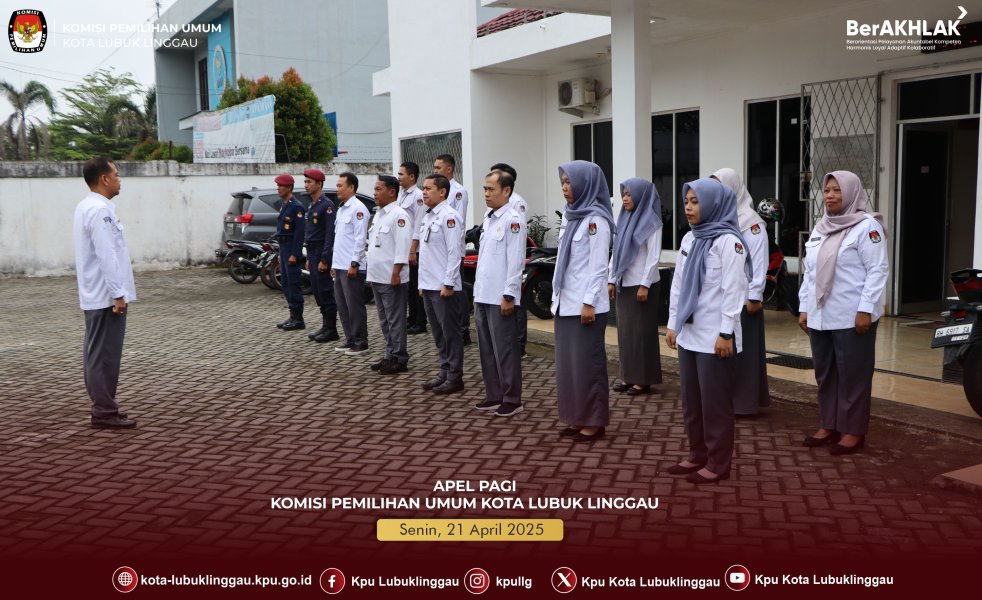 #TemanPemiih, Senin, 14 April 2025. KPU Kota Lubuk Linggau melaksanakan Apel Pagi di halaman Kantor KPU Kota Lubuklinggau. Bertindak sebagai pemimpin Apel Sekretaris KPU Kota Lubuk LinggauBapak Hironimus Emilianus Mbeko, SE.,M.M diikuti oleh Staff ASN, PPNPN dilingkungan sekretariat KPU Kota Lubuk Linggau. Dilaksanakan pada pukul 08.00 wib s.d Selesai