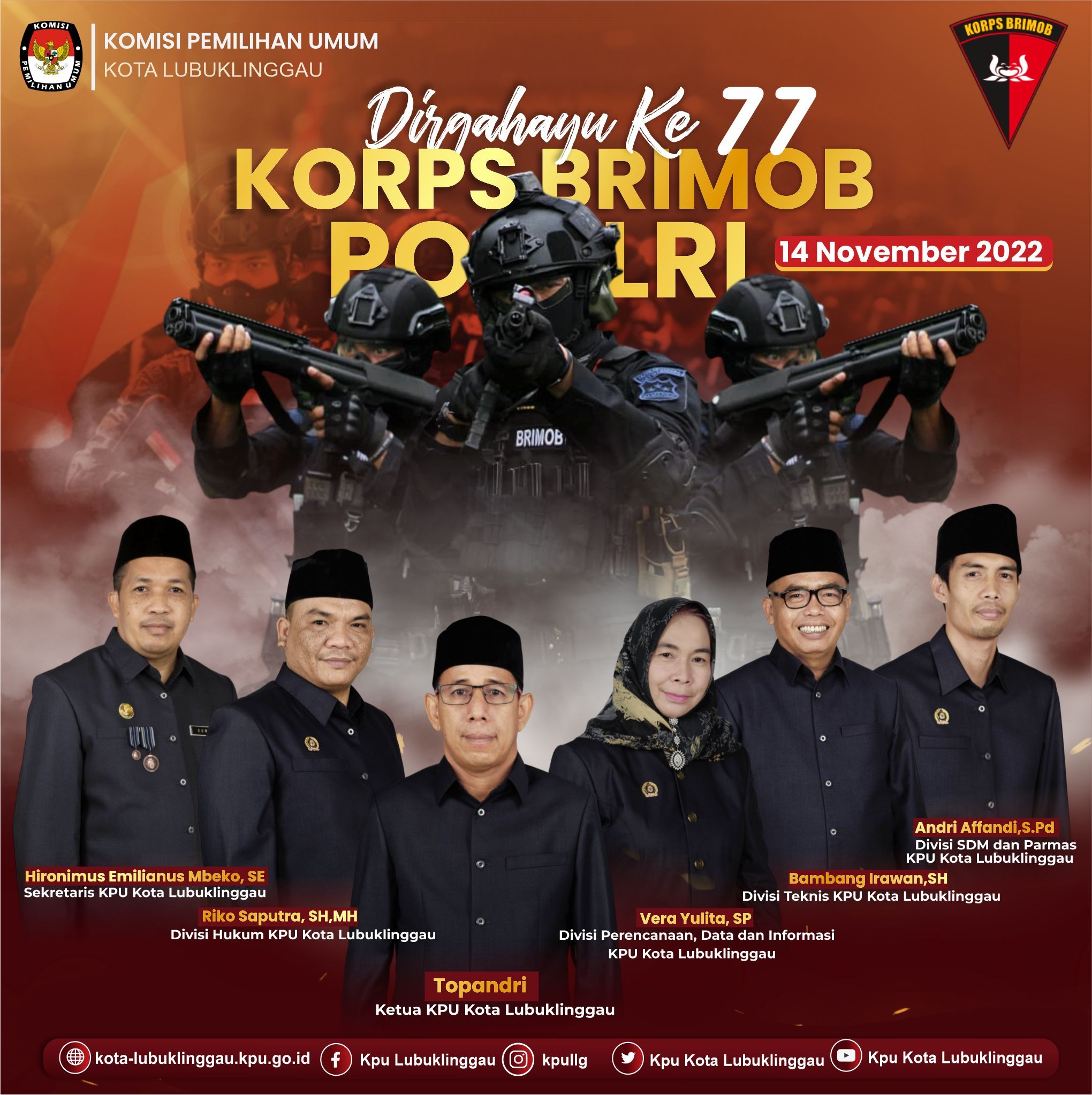 #Temanpemilih, KPU Kota Lubuklinggau mengucapkan Dirgahayu ke - 77 Korps BRIMOB POLRI