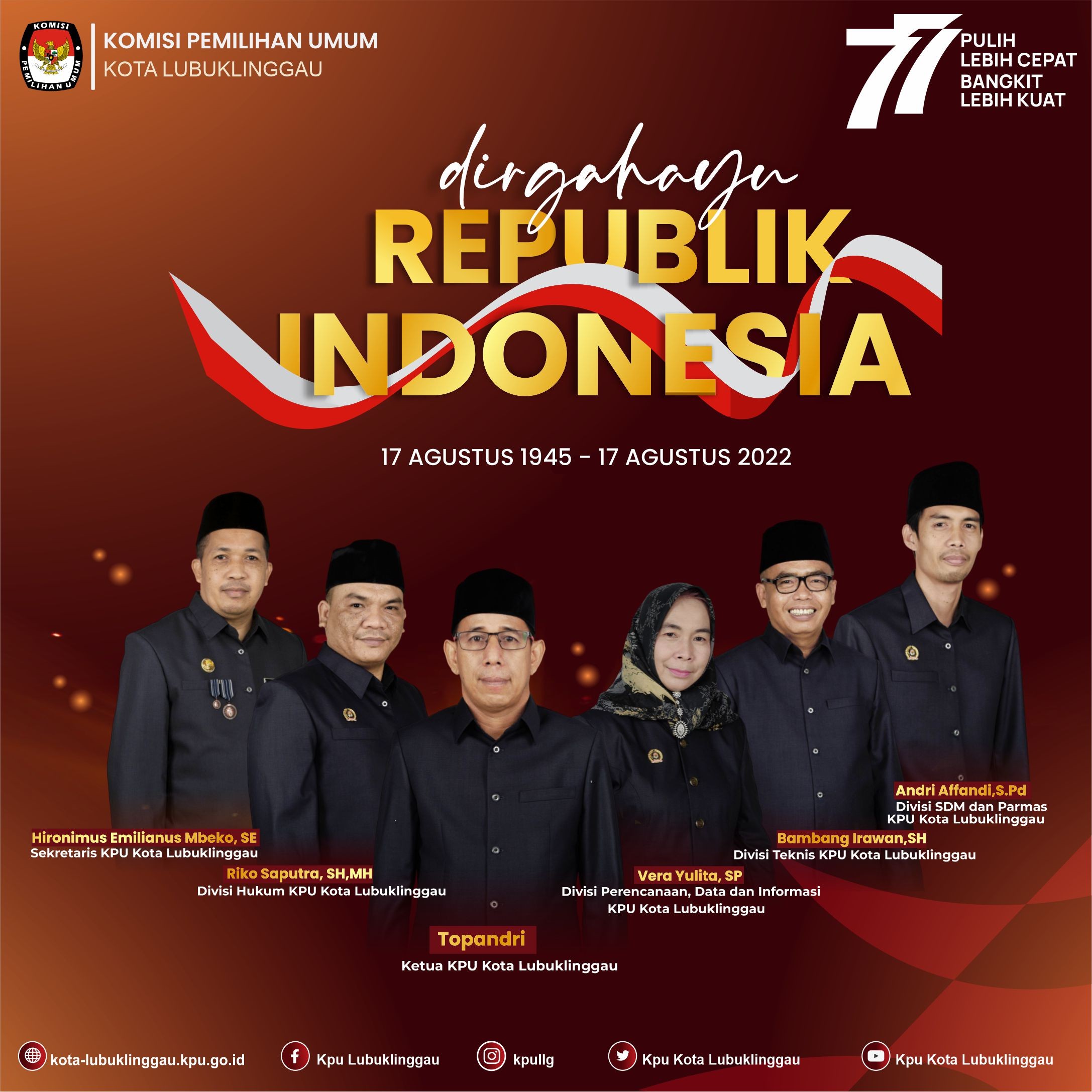#TemanPemilih,segenap keluarga besar KPU Kota Lubuklinggau mengucapkan Dirgahayu Republik Indonesia ke-77 Tahun!