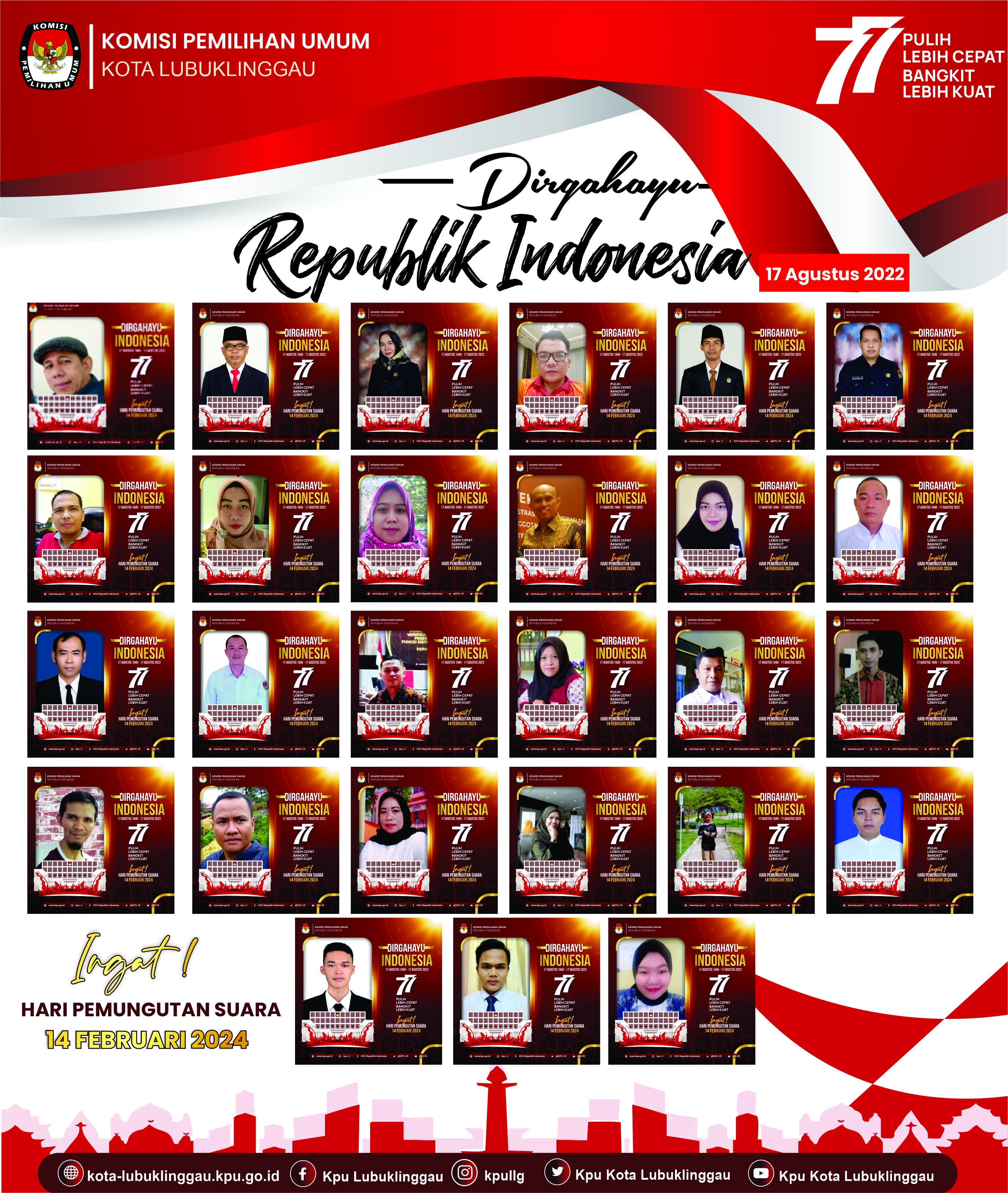 #TemanPemilih,segenap keluarga besar KPU Kota Lubuklinggau mengucapkan Dirgahayu Republik Indonesia ke-77 Tahun!