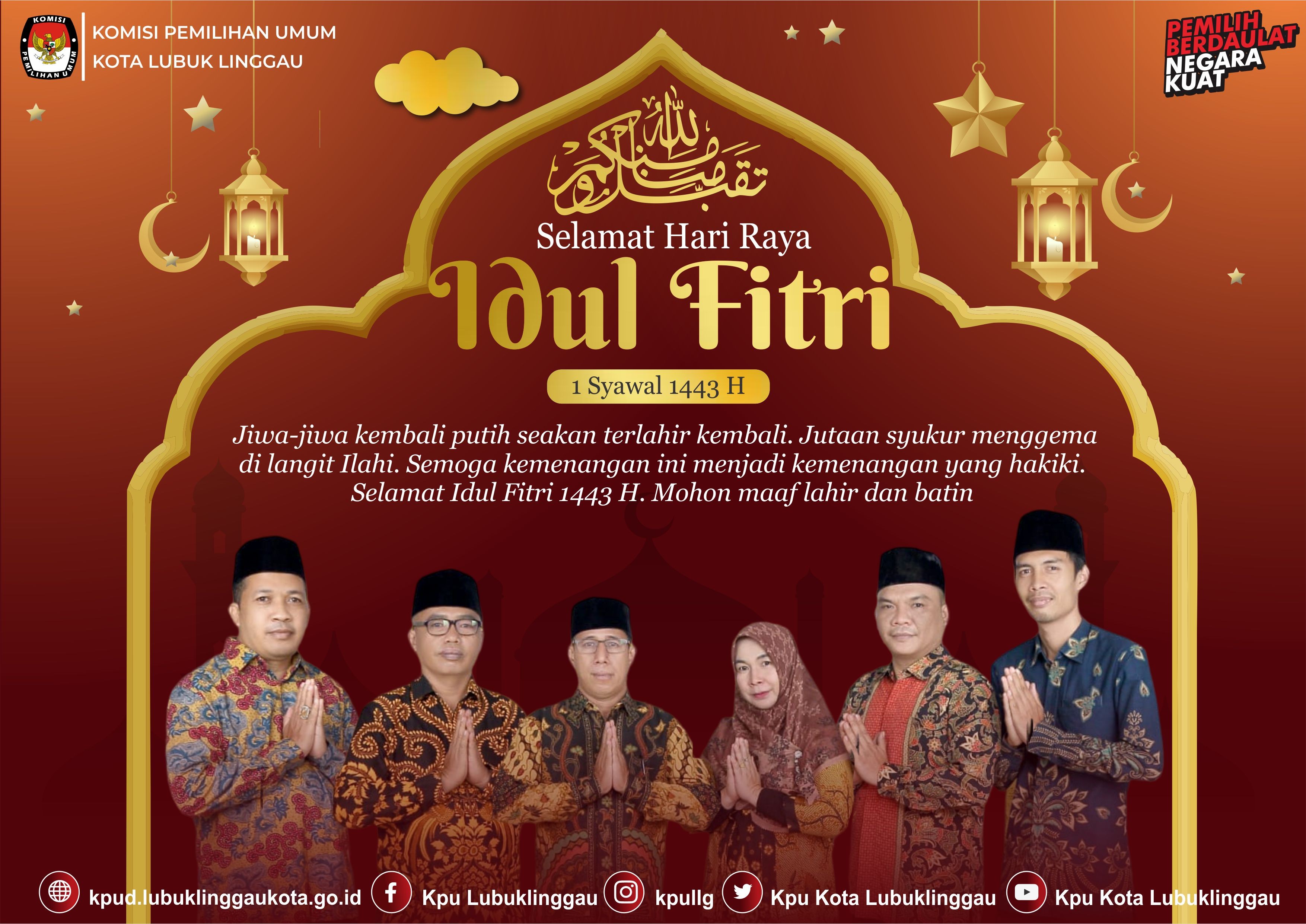 #TemanPemilih, KPU Kota LubukLinggau mengucapkan Selamat Hari Raya Idul Fitri 1443 H.