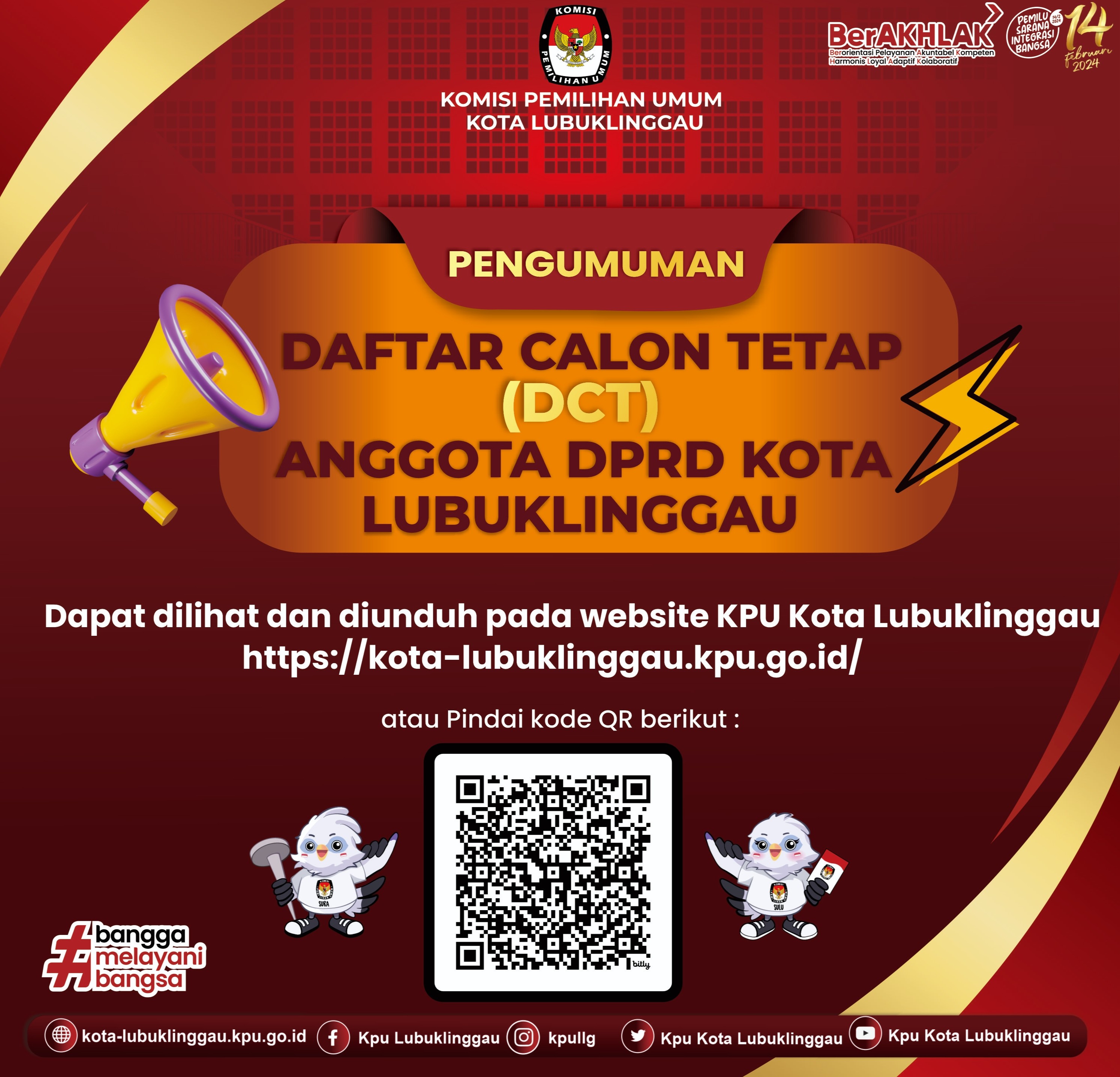 PENGUMUMAN DAFTAR CALON TETAP (DCT) ANGGOTA DPRD KOTA LUBUKLINGGAU PEMILU TAHUN 2024