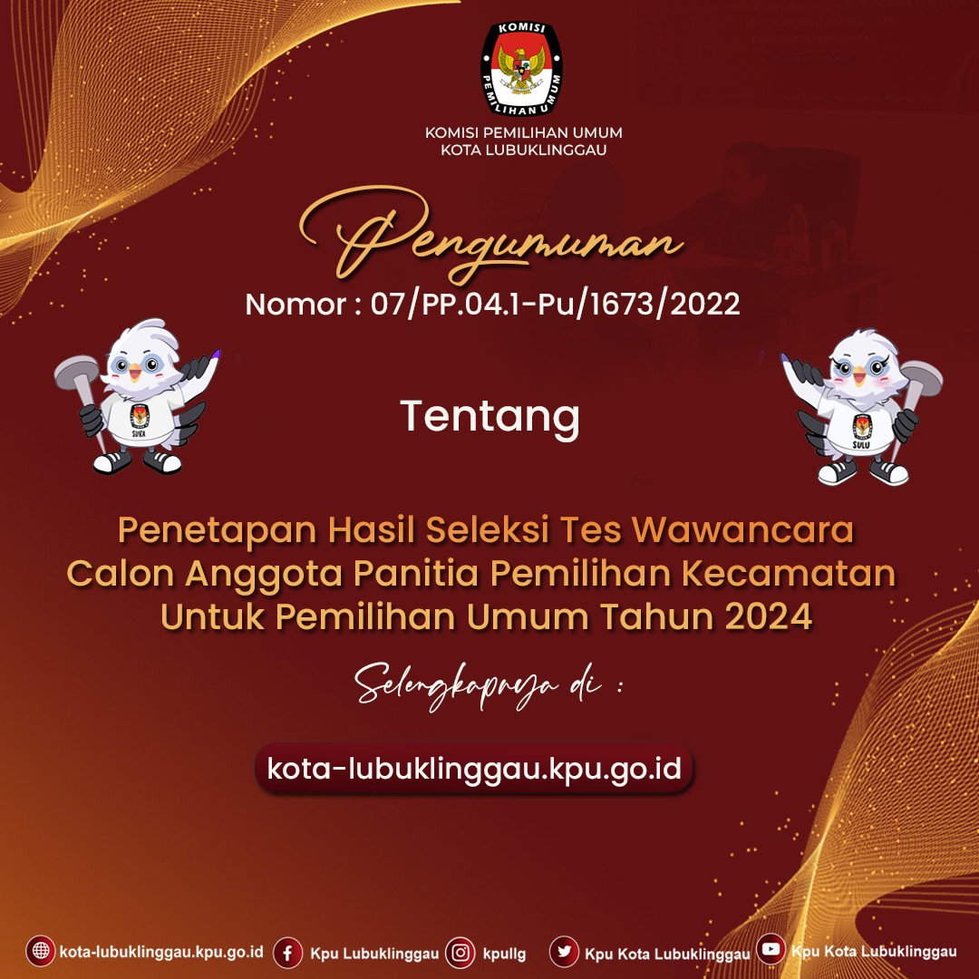Pengumuman Penetapan Hasil Seleksi Test Wawancara Calon Anggota Panitia Pemilihan Kecamatan (PPK) untuk Pemilihan Umum Tahun 2024