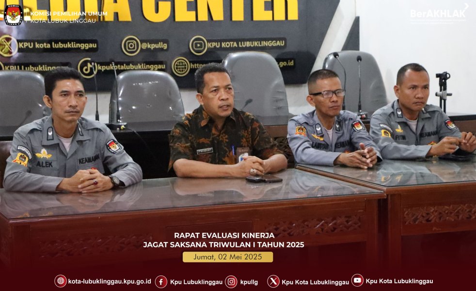 #TemanPemiih, Jumat 02 Mei 2025. KPU Kota Lubuk Linggau mengikuti Rapat Evaluasi Kinerja Jagat Saksana Triwulan I Tahun 2025 via daring melalui aplikasi Zoom yang dilaksanakan oleh KPU Republik Indonesia
