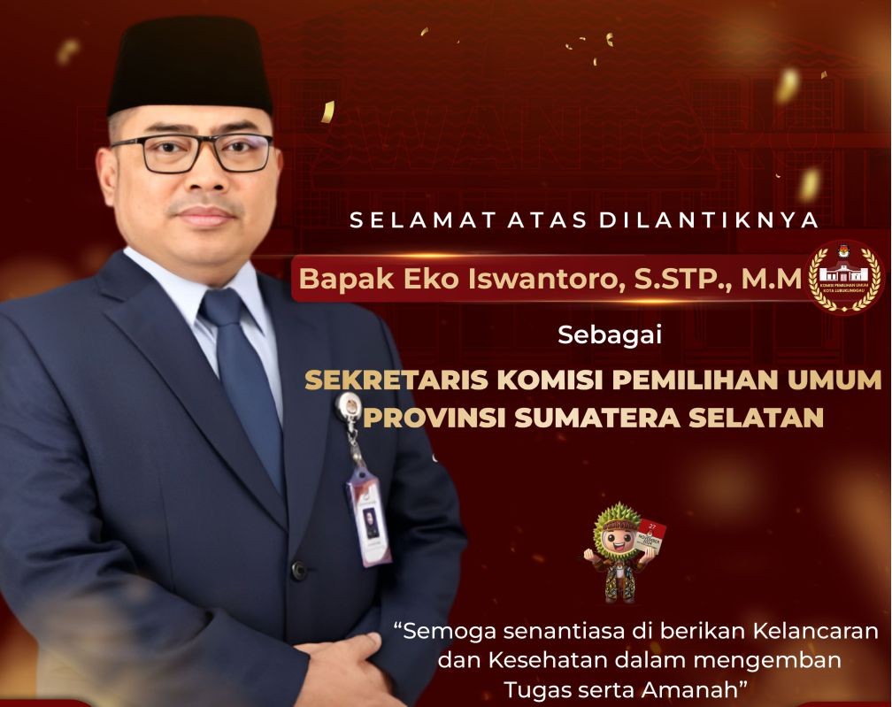 Selamat atas dilantiknya (Bapak Eko Iswantoro, S.STP., M.M) sebagai Sekretaris Komisi Pemilihan Umum Provinsi Sumatera Selatan