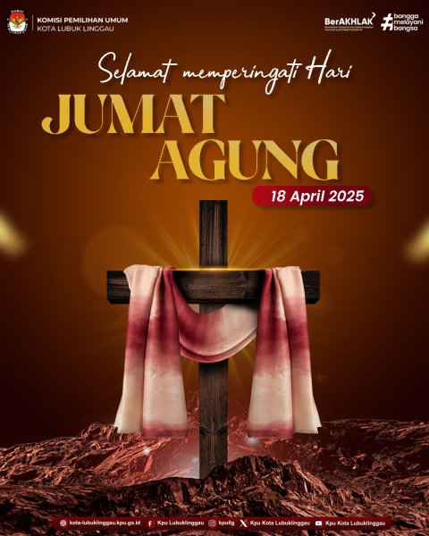 Segenap jajaran KPU Kota Lubuk Linggau mengucapkan Selamat Memperingati Jumat Agung bagi #TemanPemilih yang merayakan.