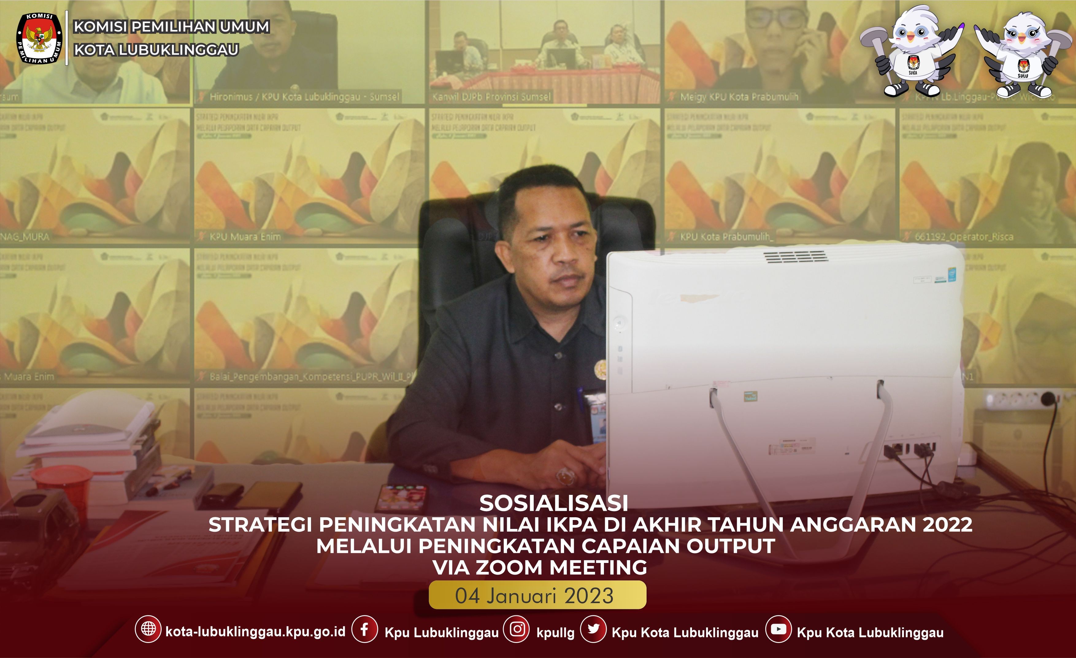 #Temanpemilih, Sekretaris KPU Kota Lubullinggau Bapak Hironimus Emilianus Mbeko, SE mengikuti zoom meeting tentang Sosialisasi Strategi Peningkatan nilai IKPA di akhir Tahun Anggaran 2022 melalui peningkatan capaian output. Yang diadakan oleh DJP Kantor Wilayah DJP Provinsi Sumatera Selatan.