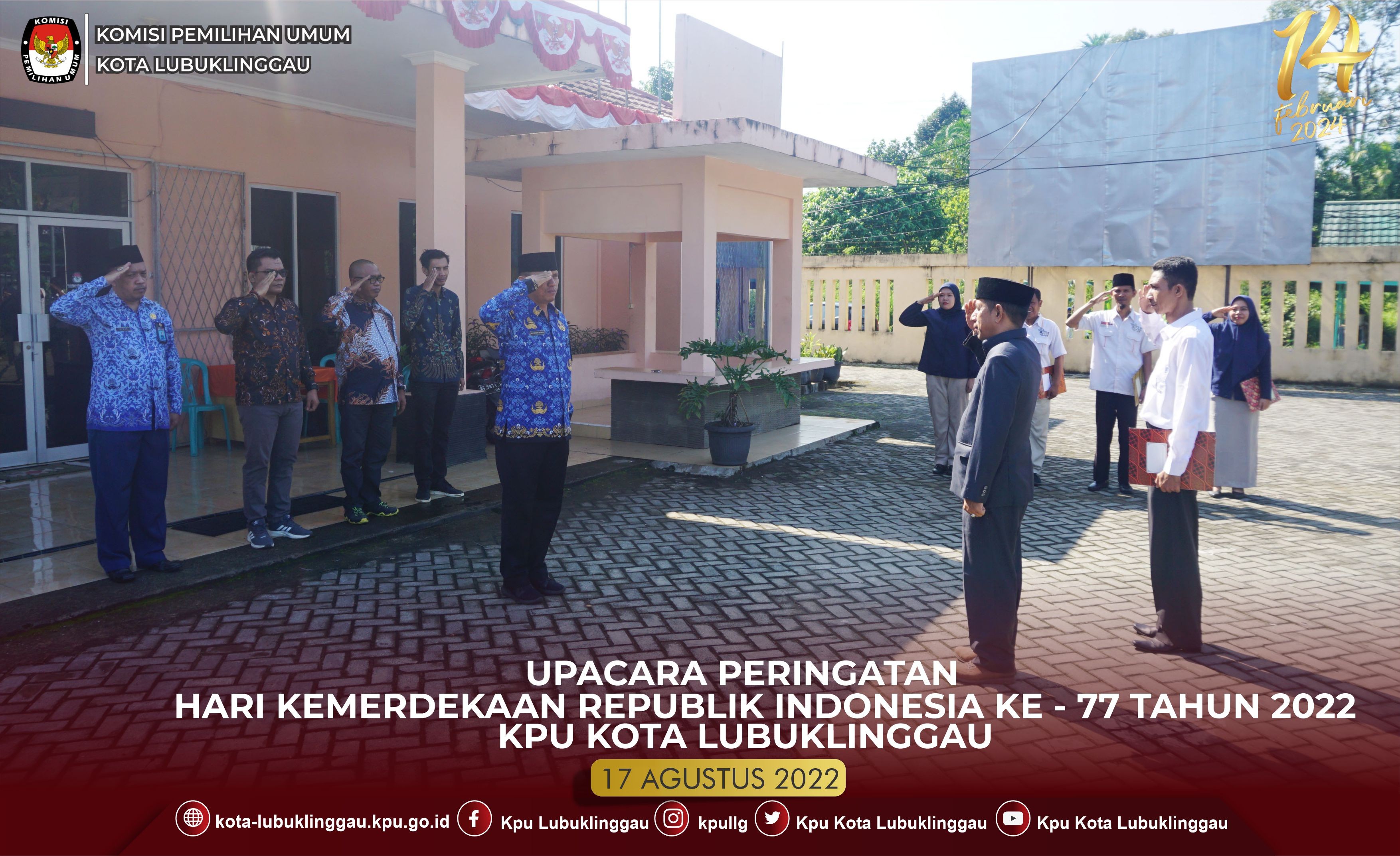#TemanPemilih, KPU Kota Lubuklinggau melaksanakan Upacara Bendera HUT Kemerdekaan Republik Indonesia Ke-77 Tahun di Lingkungan Kantor KPU K kota Lubuklinggau